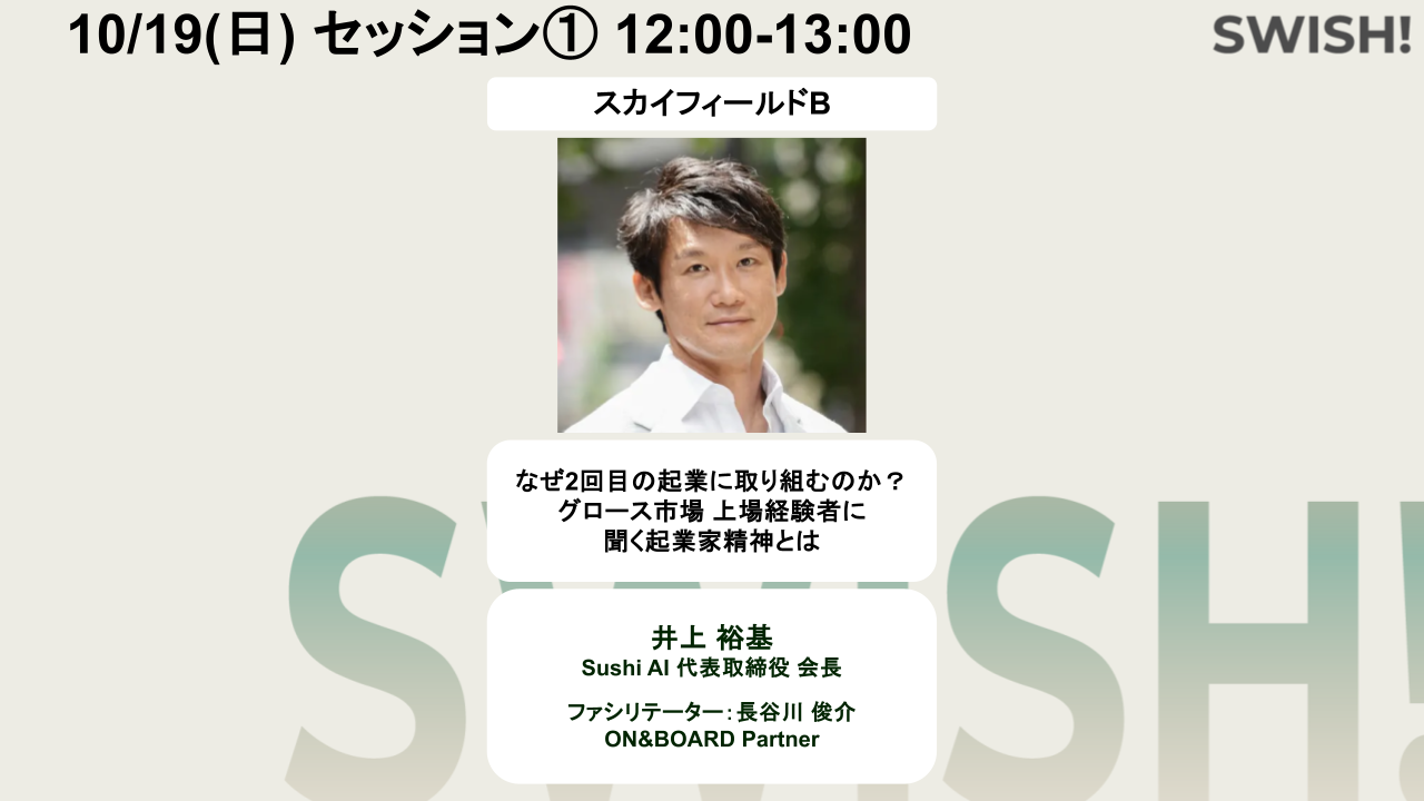 ON&BOARD株式会社は、今後もこのような場を通じて、挑戦する人々の想いを繋ぎ、スタートアップ・エコシステムの発展に貢献してまいります。 次回のSWISH!で、また皆様とお会いできることを楽しみにしています。