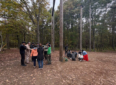 初対面の参加者同士がチームを組み、森の中に設置された課題(アドベンチャー)に挑戦。不安定な足場を協力して渡ったり、言葉を使わずに意思疎通を図ったりするプロセスを通じて、前夜の交流とはまた違った「戦友」のような連帯感が醸成されました。